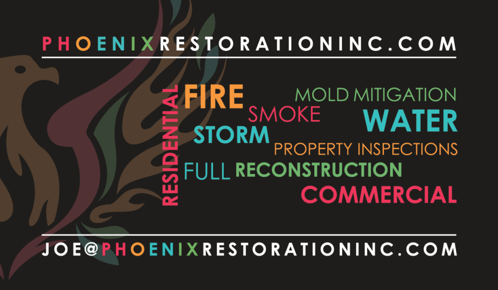 Phoenix Remediation came to me while it was still just an idea without a name. I suggested using a phoenix for their logo because it’s a symbol of rebirth, and the company’s mission is to restore normal life for people after the upheaval caused by environmental incidents in their home or business. The four colors represent four areas of remediation — fire, smoke, water and mold — and the bold shades convey strength and vitality.